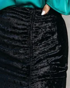 ENDL-001 Dash Of Winter Velvet Ruched Slit Maxi Skirt – Black – FINAL SALE