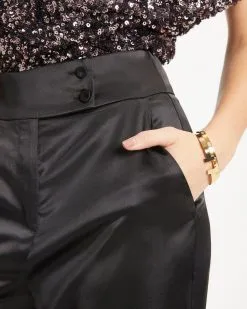 SALT-001 Ellis Satin Pocketed Wide Leg Pants – Black – FINAL SALE