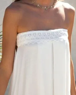 AAKA-001 Raine Strapless Crochet Trim Maxi Dress – White – SALE