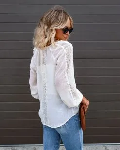 Trinity Lace Chiffon Blouse – White – FINAL SALE