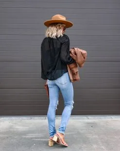 Memory Lane Strolls Lace Neck Tie Top – Black – FINAL SALE