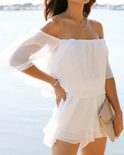 Heaven Sent Off The Shoulder Chiffon Romper – White – SALE