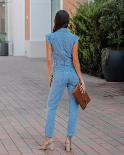 Austin Pocketed Halter Denim Jumpsuit – Denim Blue – FINAL SALE