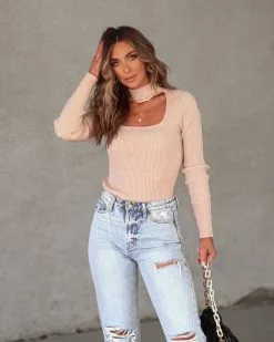 Look My Way Knit Cutout Sweater – Latte – FINAL SALE