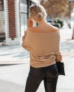 Tess Cashmere Blend Off The Shoulder Sweater – Camel – SALE