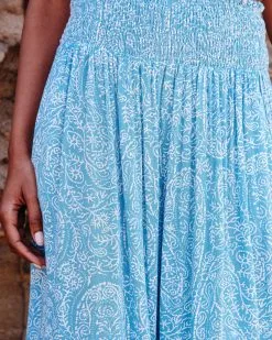 Amaya Printed Smocked Wide Leg Pants – Blue – SALE