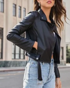 Michelle Faux Leather Biker Jacket – Black – SALE