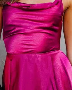 Betsy Satin Cowl Neck Lace Up Back Romper – Rose – FINAL SALE