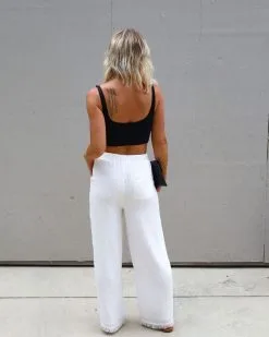 GILL-001 Barrino Pocketed Frayed Hem Drawstring Pants – White