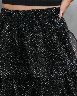 FATE-001 Swan Lake Tiered Shimmer Tulle Midi Skirt – Black – FINAL SALE