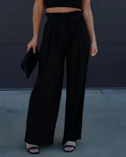 AAKA-001 Del Ray Waist Tie Wide Leg Pants – Black – SALE