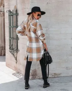 Fall Breeze And Autumn Leaves Plaid Long Line Shacket – FINAL SALE