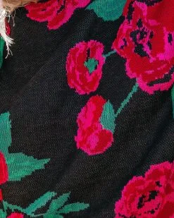 Forever Ours Floral Knit Pullover Sweater – Black – FINAL SALE