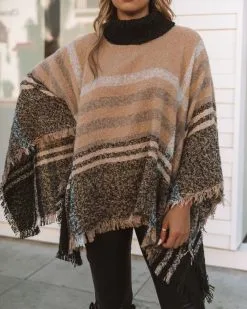 Jaslyn Plaid Turtleneck Poncho – Mocha Multi – FINAL SALE