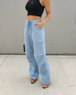BAIL-001 Jolene Cotton Blend High Waisted Cargo Pants – Dusty Blue