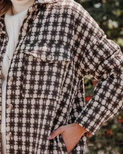 Florence Houndstooth Pocketed Long Line Shacket – FINAL SALE