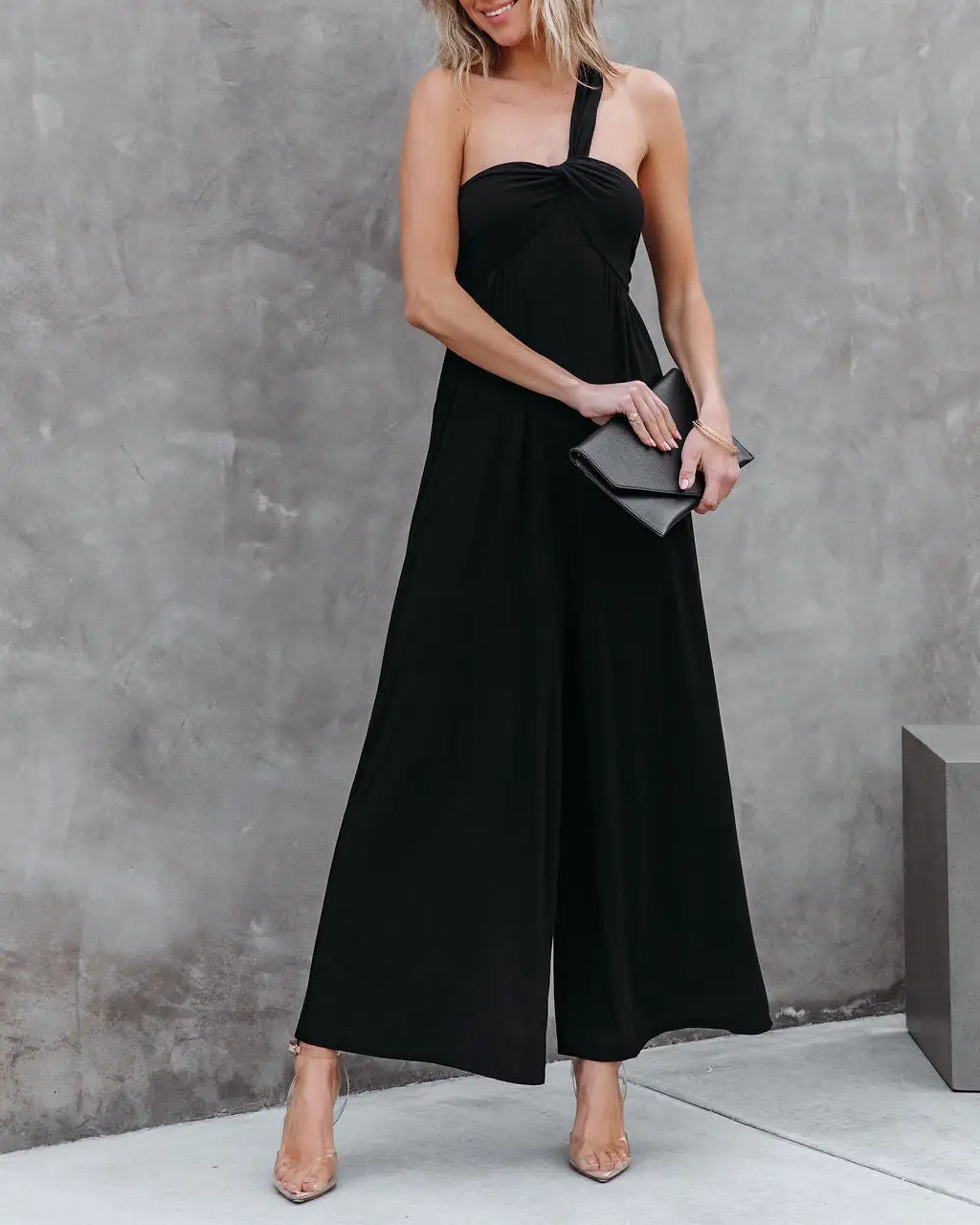 Dress up for your event in the Pursuit Of Happiness One Shoulder Jumpsuit in black that features a relaxed fit.