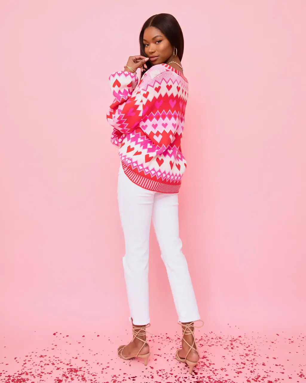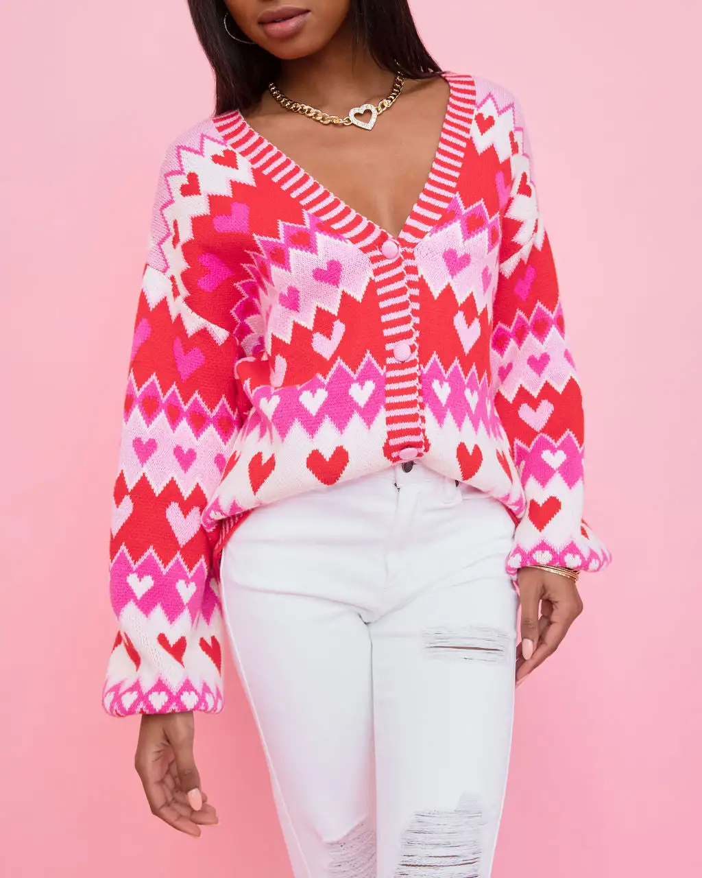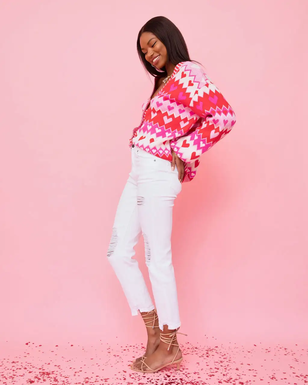 Cue up compliments in the Queen Of Hearts Cardigan in red and pink that features a relaxed fit.