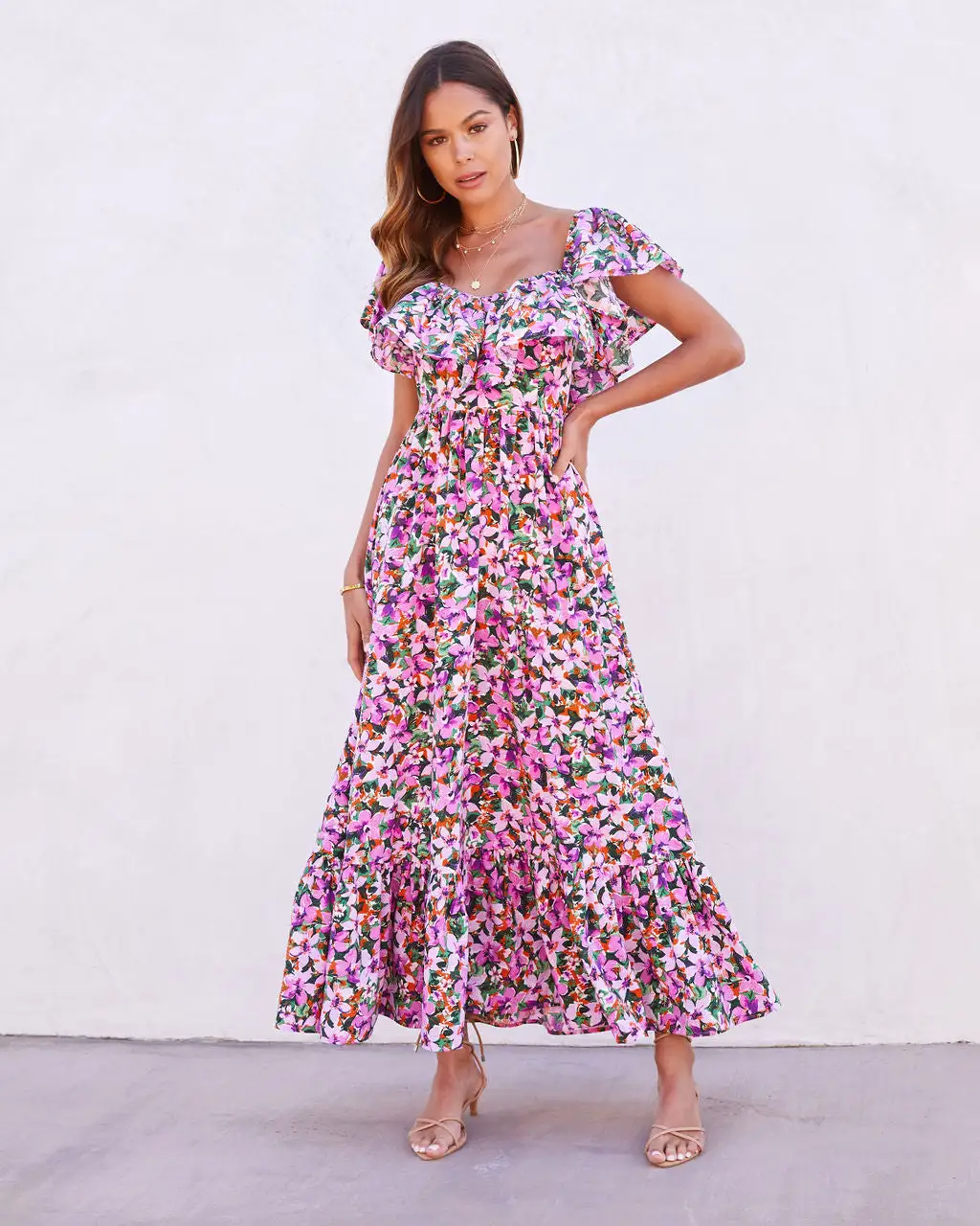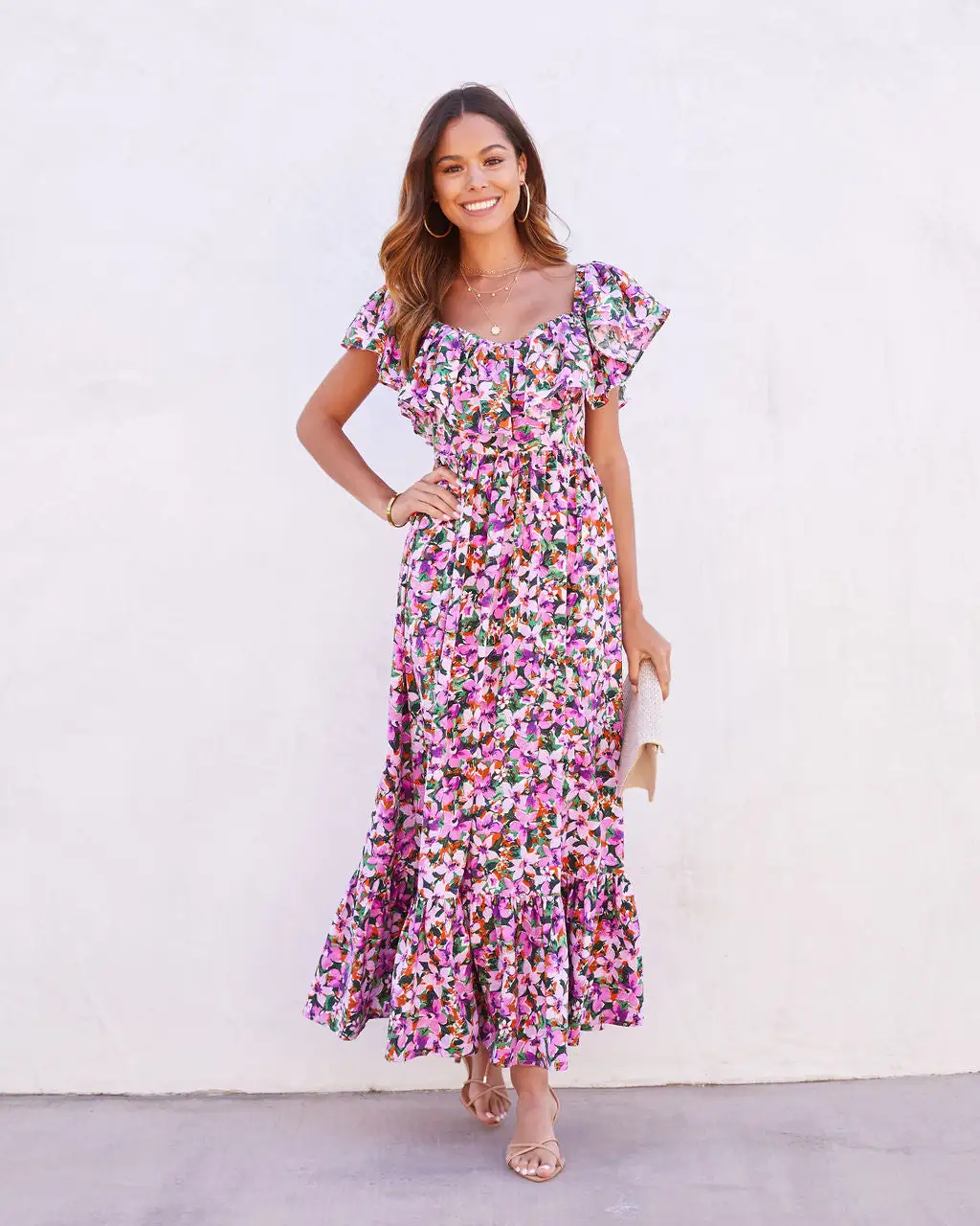 Model is Wearing a Size Small. Height is 5’7”, Bust is 33”, Waist 25.5”, and Hips 34”