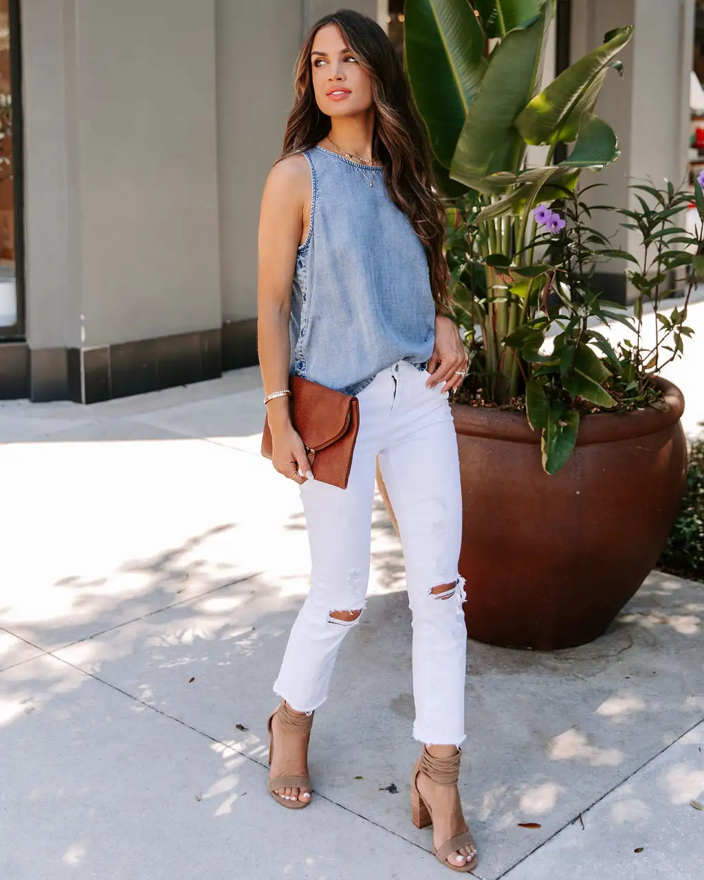 Styled with: Chloe Mini Necklace, Simple Bangle, Stella Clutch, Henderson Denim, and Blair Heel.