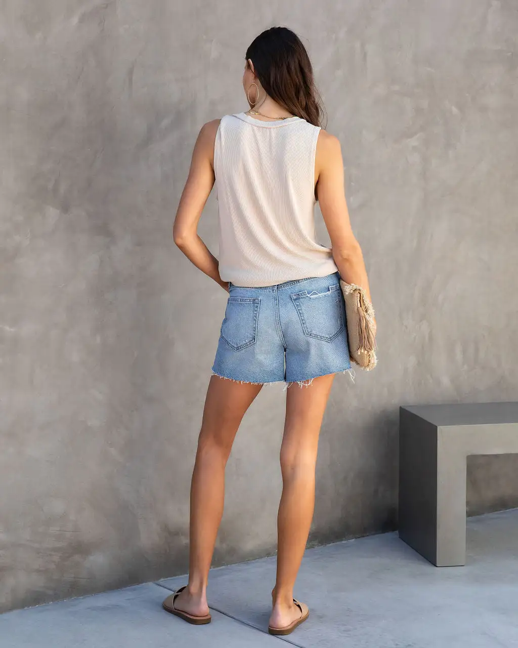 The Rylah Knit Henley Tank in Light Taupe is a great base layer that can complete any look.