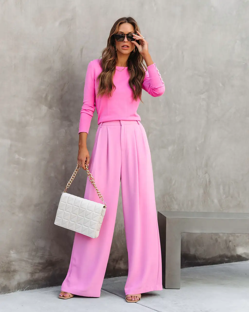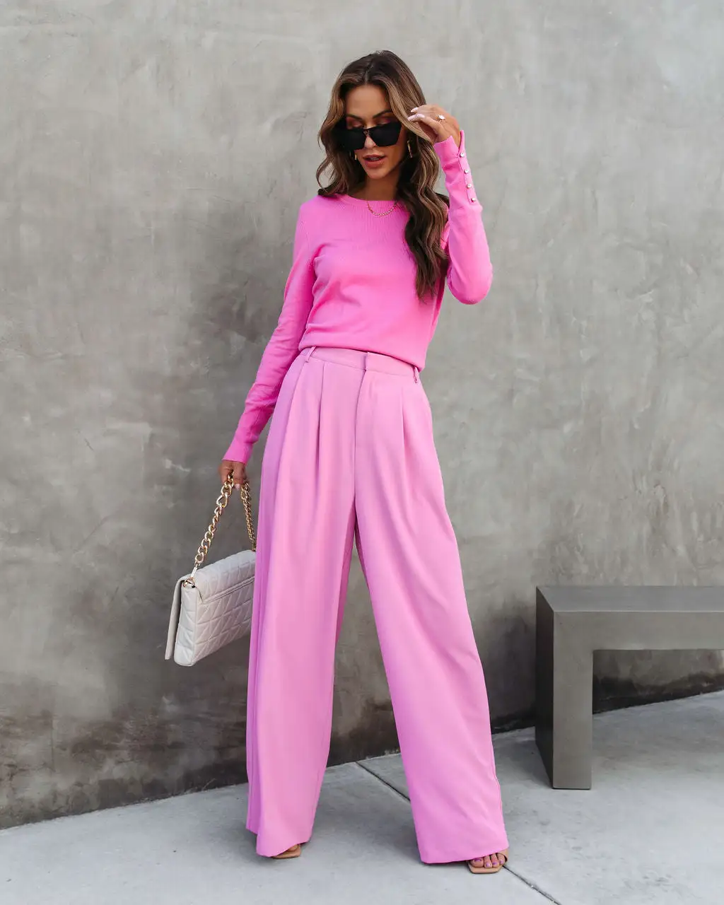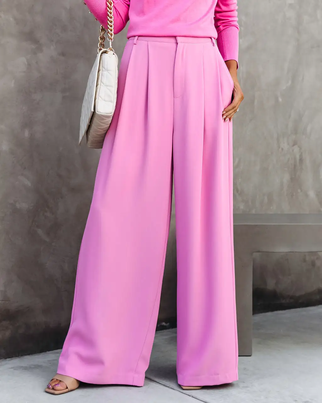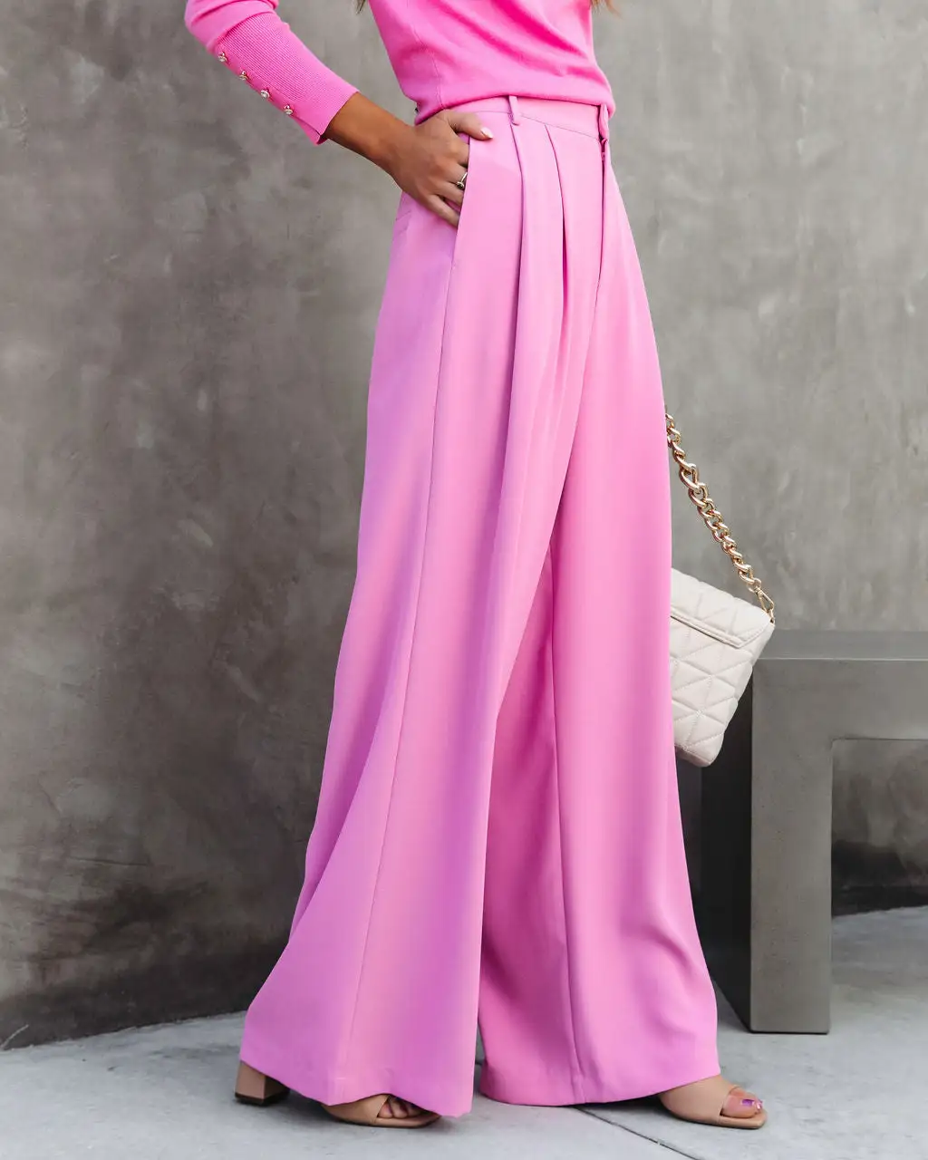 Trendy babes will love the Madrigal Pocketed Wide Leg Pants in pink that feature a relaxed fit.