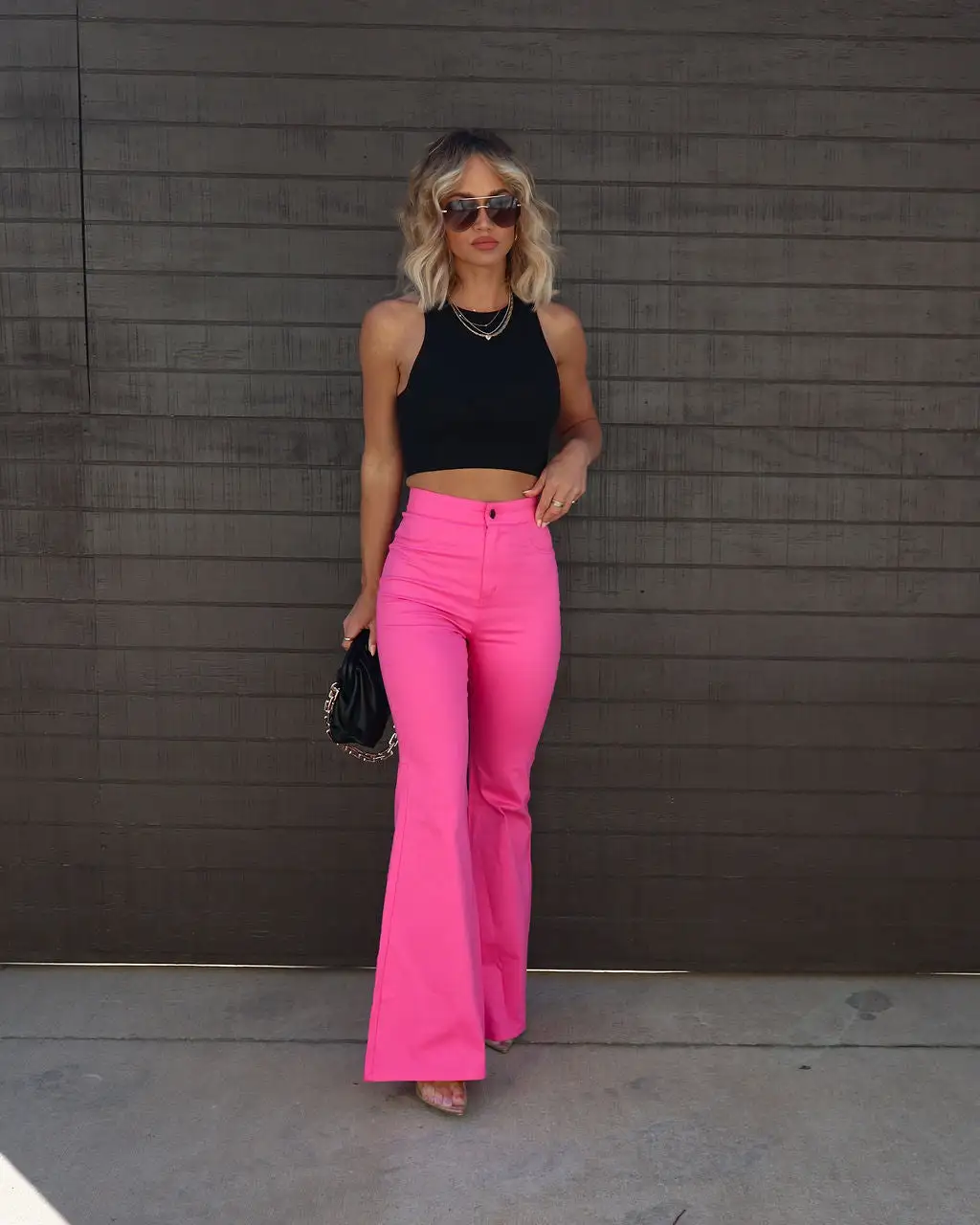 Be bold in the Take A Trip High Rise Flare Pants in pink that feature a flared leg.