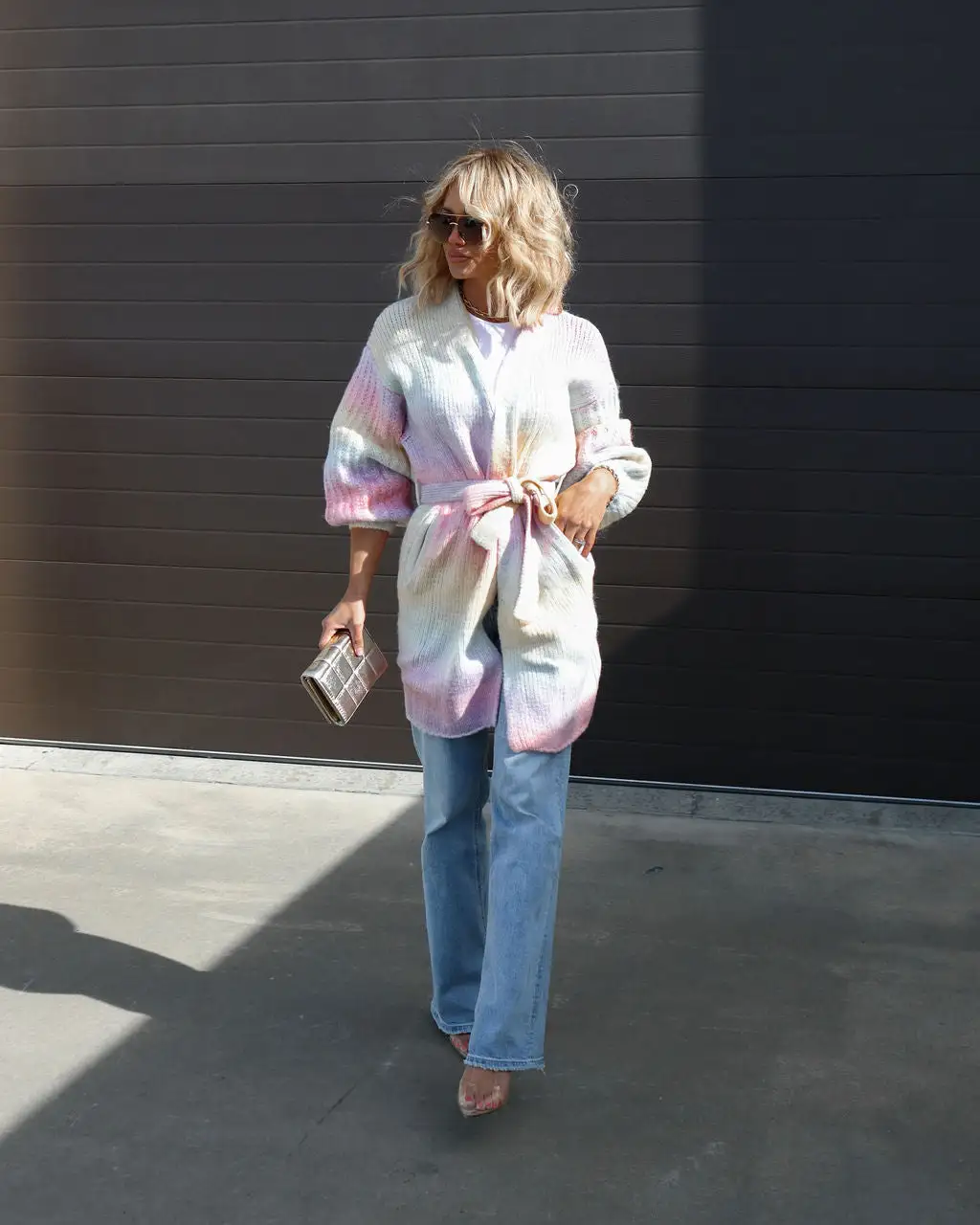 The Shades Of Happiness Knit Pocketed Tie Waist Cardigan- Multi is the ultimate weekend sweater with a muted watercolor rainbow that is sure to pair perfectly with a cup of coffee.
