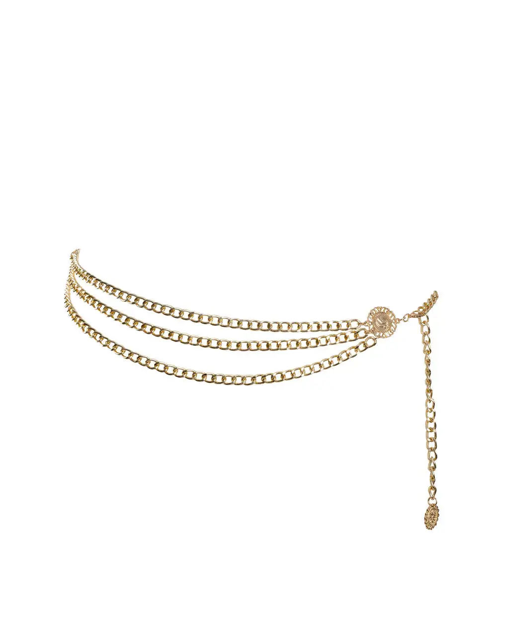 //Best Seller// Add the little touch of luxe your look is longing for with our Rally Layered Chain Belt! This gold chain belt is accented with dual drop chains that are detailed with embossed coin details. Pair over your one piece swimmy! Styled with the Love Connection Hoops, Archer Chain Lariat Necklace, Gaia Coin Necklace, Layers Of My Heart Necklace, Memorable Beaded Bracelet Set, and Bronzed Ribbed Scoop One Piece.
