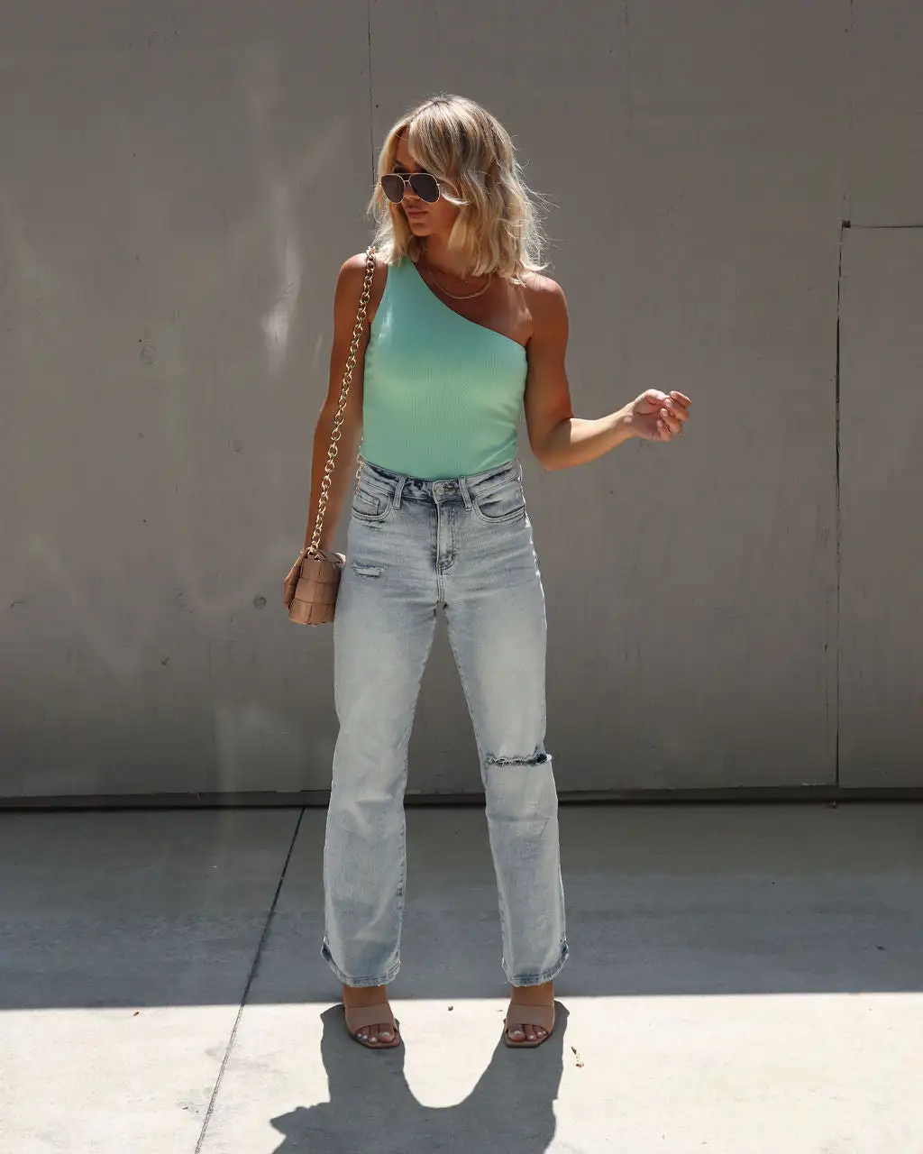 Model is Wearing a Size Small. Height is 5’8″, Bust is 35”, Waist 26”, and Hips 36”