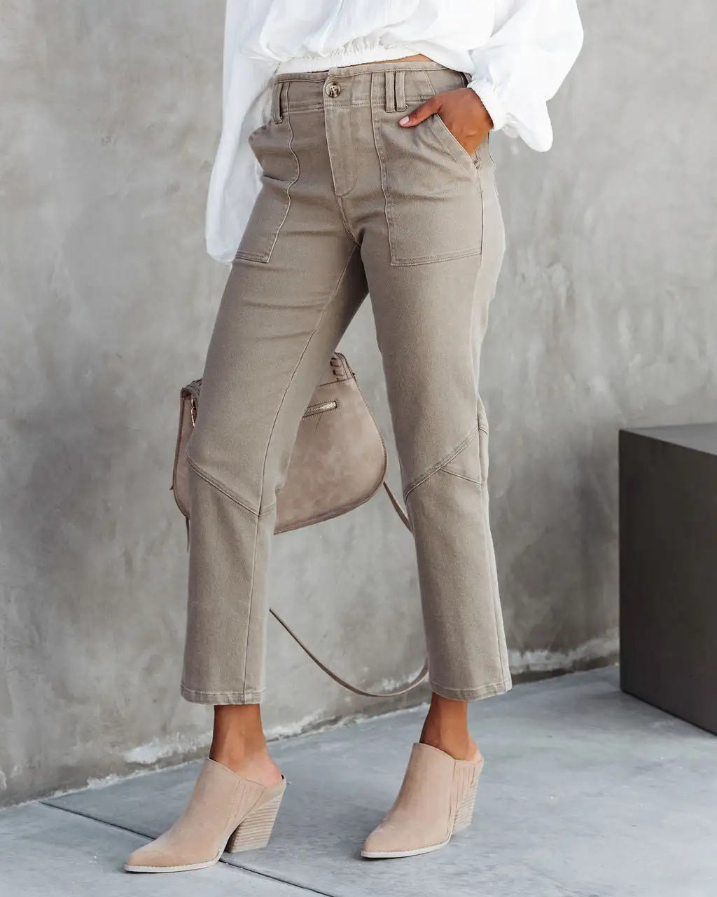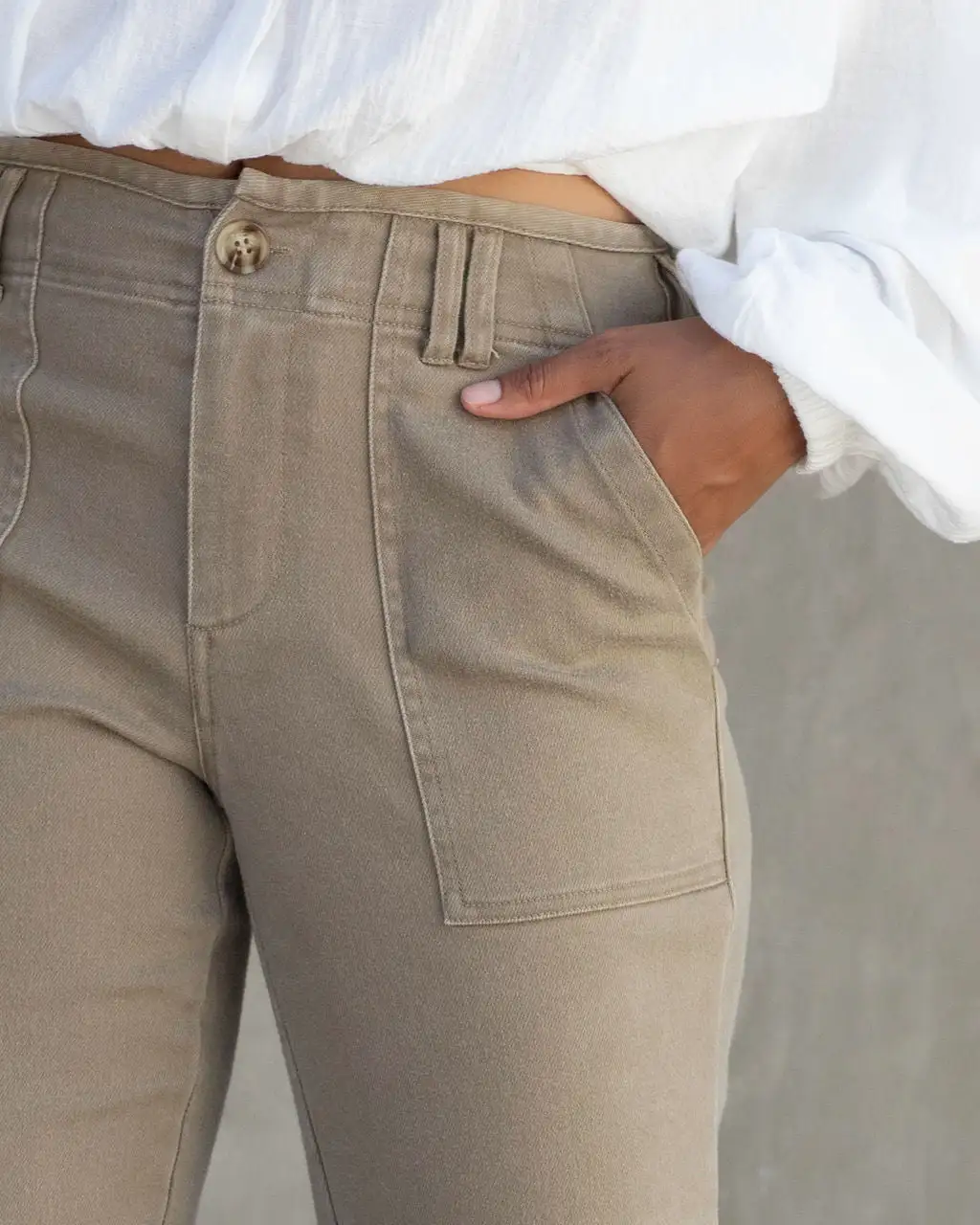 Cool meets trendy in the Scout Pocketed High Rise Pants in khaki that feature a straight leg.