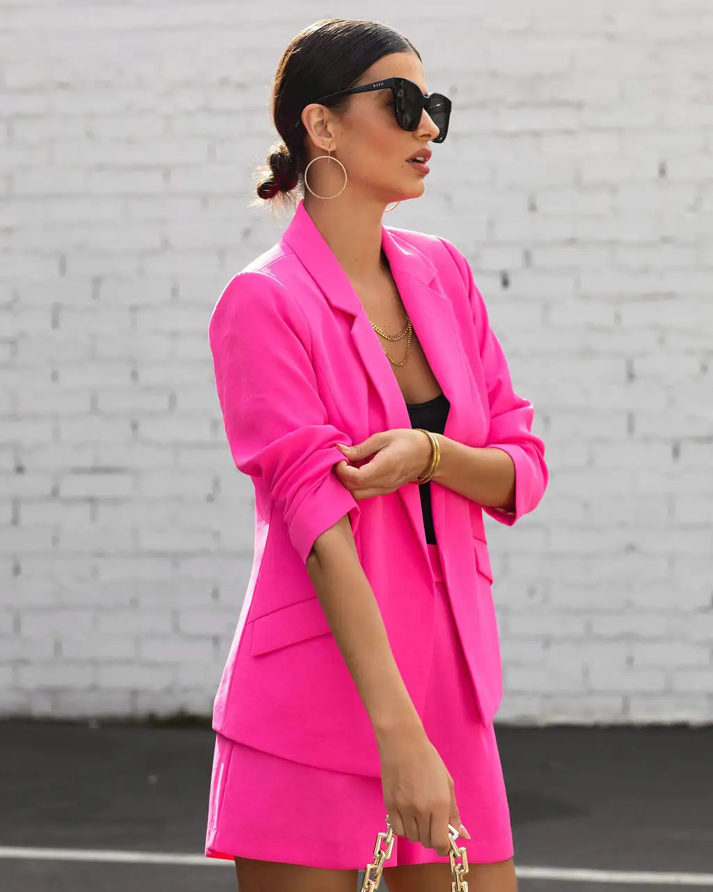 Embrace your boss babe side in the She Means Business Pocketed Blazer in hot pink that features a notched collar.