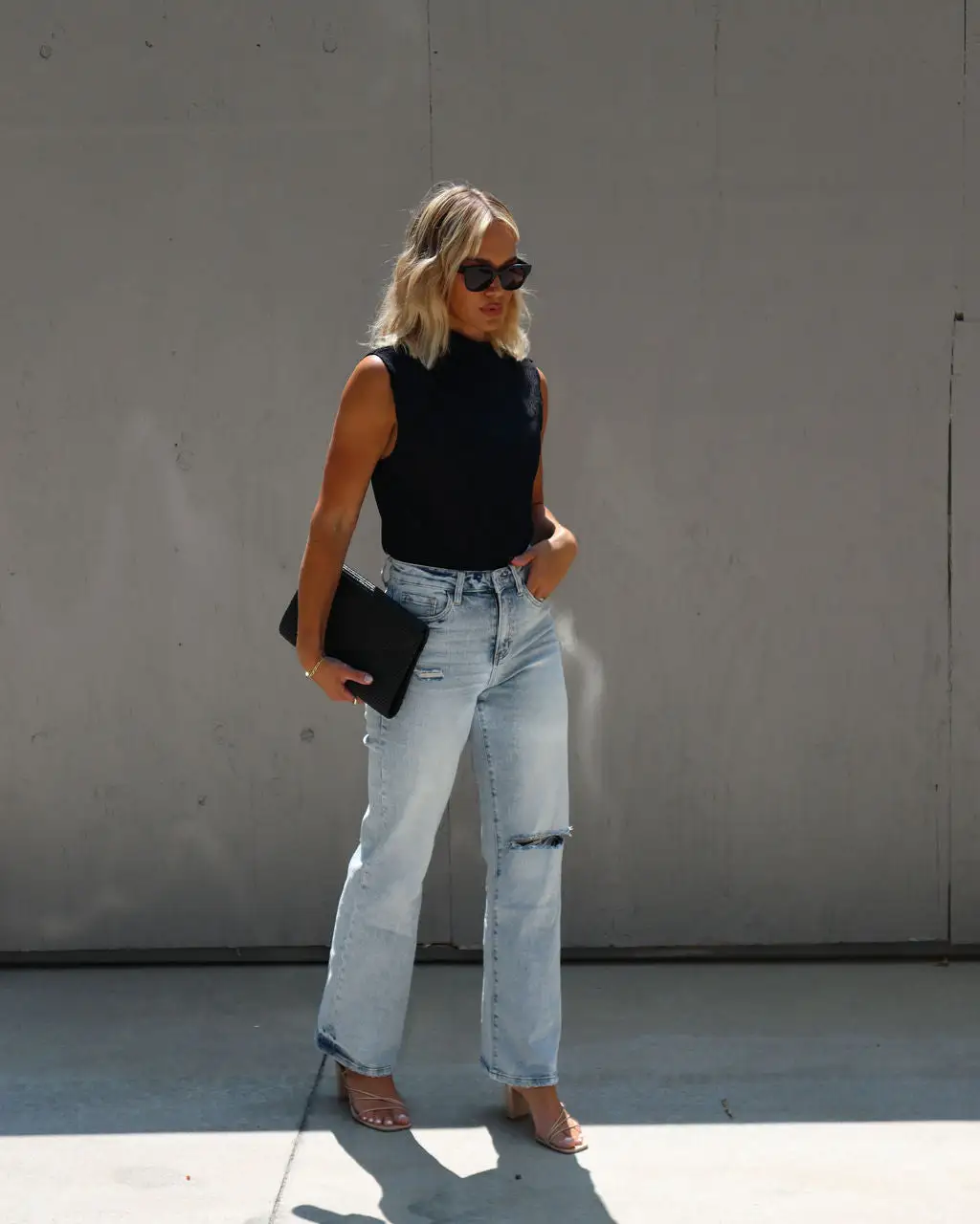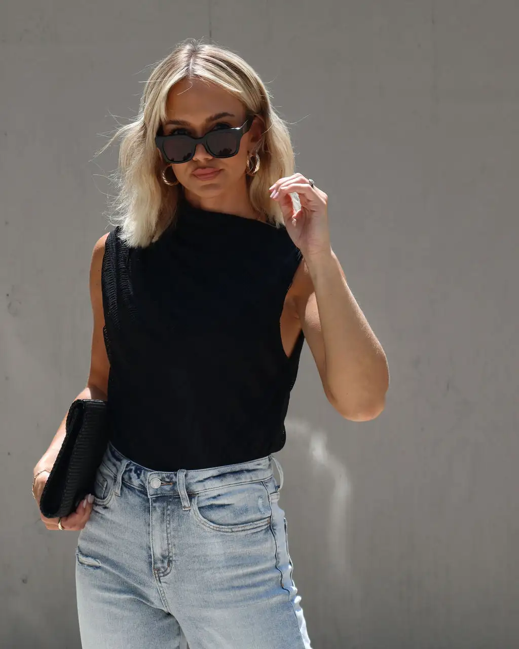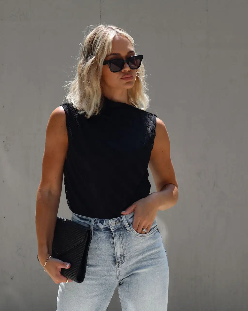 Model is Wearing a Size Small. Height is 5’8″, Bust is 35”, Waist 26”, and Hips 36”