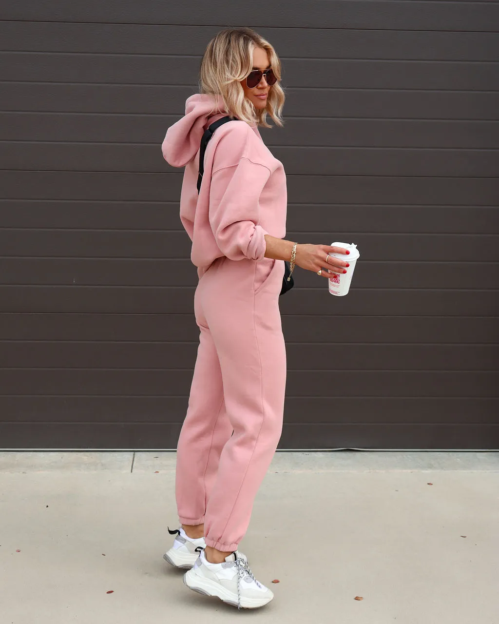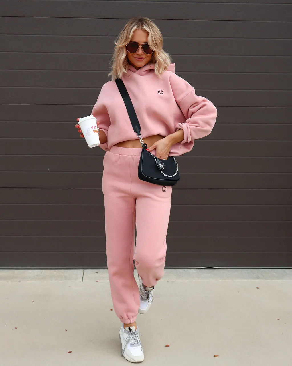 Cheeky meets comfy in the Smile Like You Mean It Pocketed Jogger Pants in dusty pink that feature a high rise.