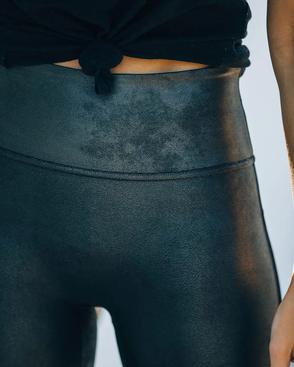 //Best Seller// When you are getting ready for a night out, this oh-so-chic fan favorite is your new go-to! Our Faux Leather Leggings come in black with a high rise. These faux leather leggings keep you comfortable and confident all night or day. Styled with Paradiso Sunglasses, Chloe Mini Necklace, Compass Coin Necklace, Highland Bag, Physique Racerback Tank, and Upmarket Glitter Running Sole Sneaker.