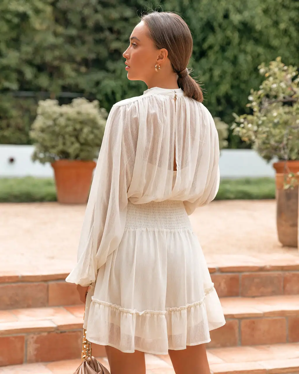 //VICI Exclusive// Simplicity meets elegance in our Starts With Love Smocked Dress! This cream mini is detailed with a crew neckline and a smocked waistband. Finished with a removable tank slip lining. Styled with the Mercury Hoops, Chic Crossbody Chain Pouch Bag, and Whimsy Heel.