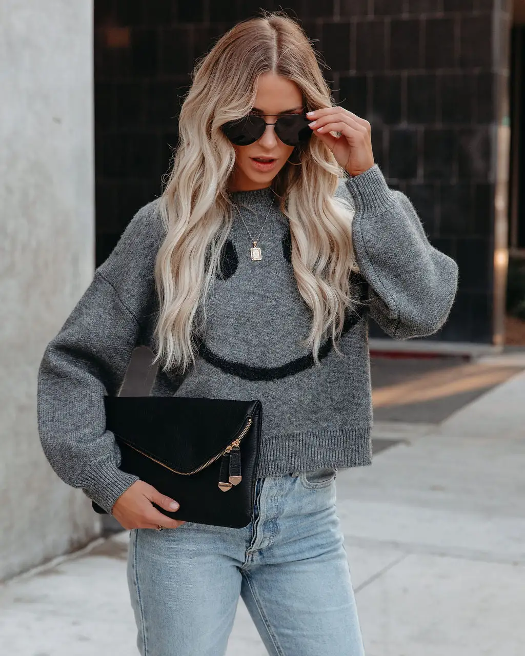Styled with: Lenox Sunglasses, Initial Card Necklace, Beautiful Smile Sweater, Kason Denim, and Brycen Boot.