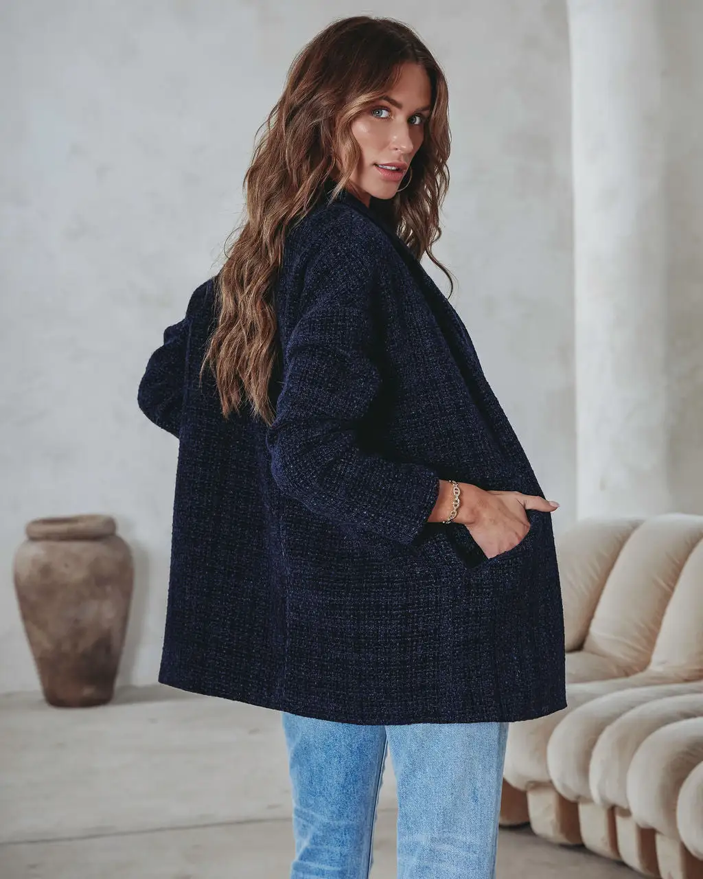 Turn heads in the Stellaluna Textured Pocketed Blazer in navy that features an oversized fit.