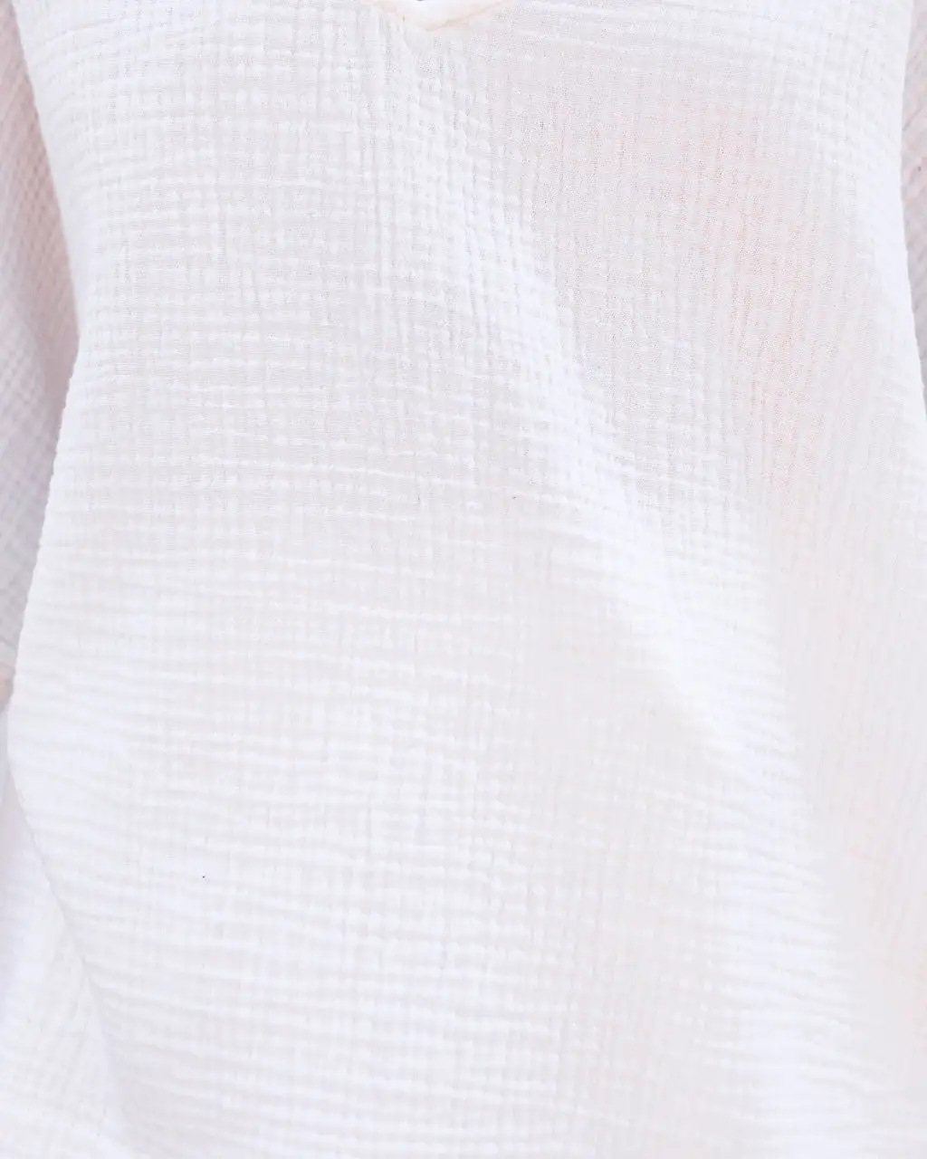 //Best Seller// Summer ‘fits made easy in our Sumner Cotton Relaxed V-Neck Top! This off white crinkled top pairs fab with the matching shorts and heeled sandals.