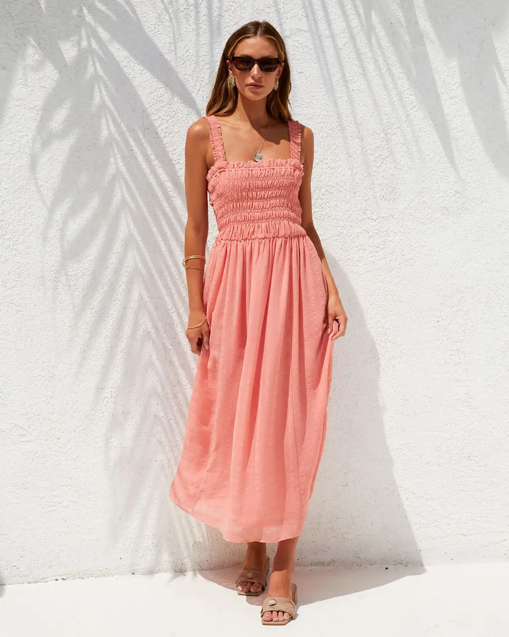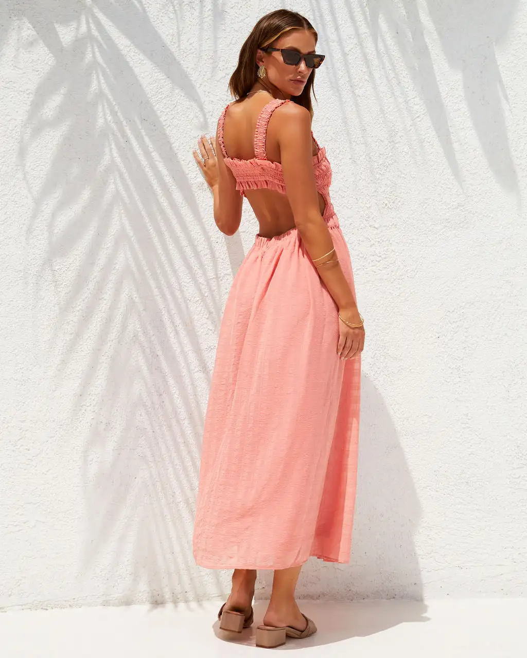 Model is Wearing a Size Small. Height is 5’7″, Bust is 32”, Waist 25”, and Hips 30”